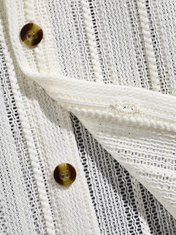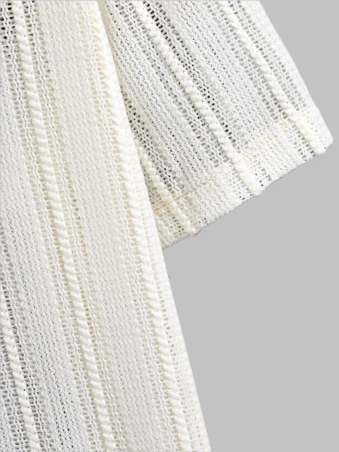 Men's Comfortable Hollow Striped Button-Down Short Sleeve Shirt