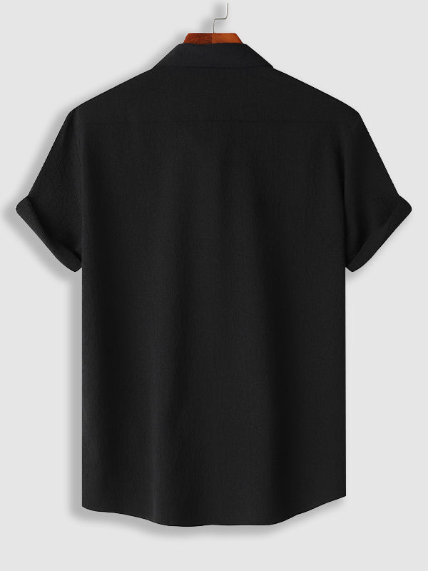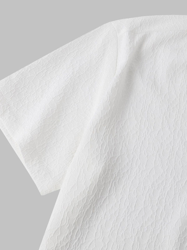 Men's Solid Color Marble Pattern Textured Casual Short Sleeve Shirt