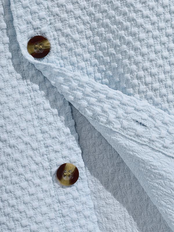 Men's solid color seersucker textured lapel button-down short-sleeved shirt
