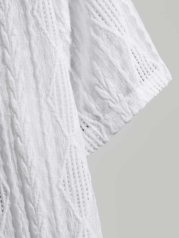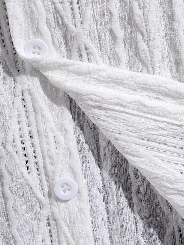 Men's Vintage Jacquard Hollow Cuban Collar Casual Short Sleeve Shirt